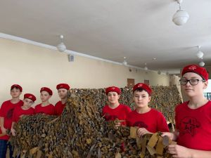 Пучы мәктәбе укучылары хәрбиләребез өчен маскировка челтәрләре үрә