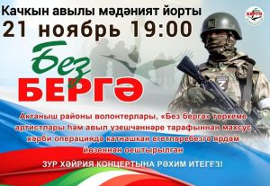 21 ноябрьдә Качкын мәдәният йортында махсус хәрби операциядәге якташларыбызга ярдәм йөзеннән, чираттагы «Без бергә» хәйрия концерты булачак.